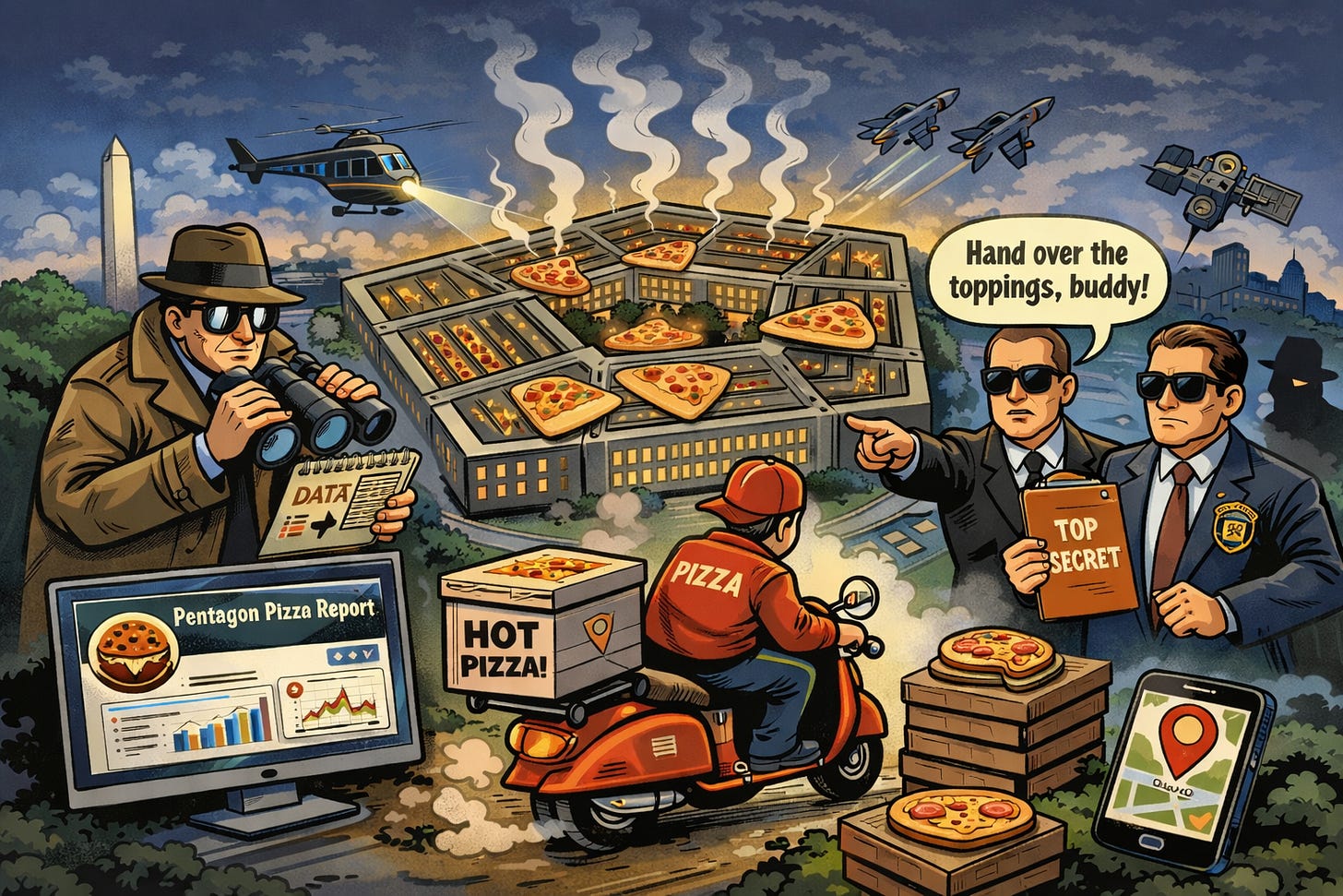 As you might have guessed, Alchian’s intellectual heir is the X account Pentagon Pizza Report, which tracks activity in pizzerias with proximity to the Pentagon as reported by Google. Started in 2024 and with over 300K followers, it may be the gold-standard OSINT meme account. Polymarket has even formalized it.